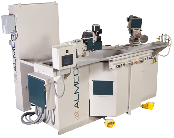 Almco是美國一家70多年歷史的機械零件表面處理公司,有著(zhù)深厚的技術(shù)積累。服務(wù)領(lǐng)域集去毛刺,打磨,清洗,光飾于一體。適用產(chǎn)品從小尺寸機械零部件到最大的飛機發(fā)動(dòng)機零部件??蛻?hù)主要集中在波音,普惠等一流飛機零部件生產(chǎn)企業(yè)。本次以其最具代表性的旋轉軸精密去毛刺設備(Spindle Finishing Machine)為例介紹如下該機型主要用于高精度產(chǎn)品的去毛刺,適合大型不見(jiàn)貨多種小型零件的組合件,磨料磨削液已高達1000ft/min的限速的旋轉移動(dòng),旋轉所產(chǎn)生的離心力帶動(dòng)介質(zhì)轉動(dòng)從而形成一個(gè)“砂輪”,零件緩慢旋轉確保能對所有表面進(jìn)行修邊和去毛刺。此設備用于齒輪,曲軸,軸承套,花鍵軸,泵轉子,噴氣發(fā)動(dòng)機葉片等
