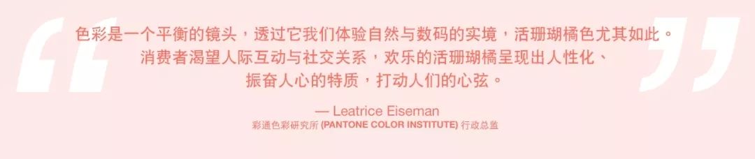 “活潑而柔美的 PANTONE 16-1546 活珊瑚橘用溫暖與養分擁抱我們,在不斷變動(dòng)的環(huán)境中,讓我們覺(jué)得舒適愉快?!薄释ㄉ恃芯克姓偙O Leatrice Eiseman女士如是說(shuō)。